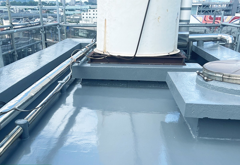 防水層を紫外線や風雨から守るために、保護材としてトップコートを塗布します。この仕上げで見た目の美しさと耐候性が向上します。