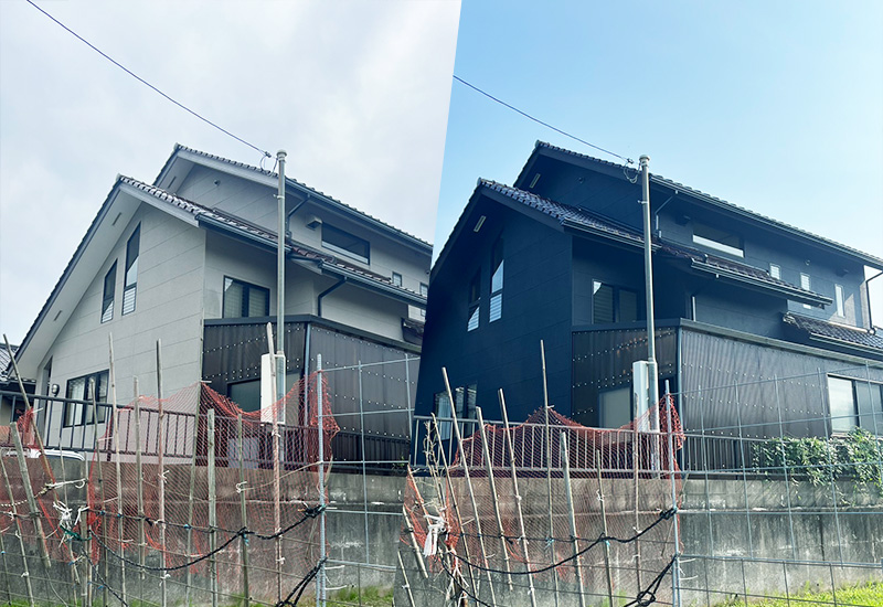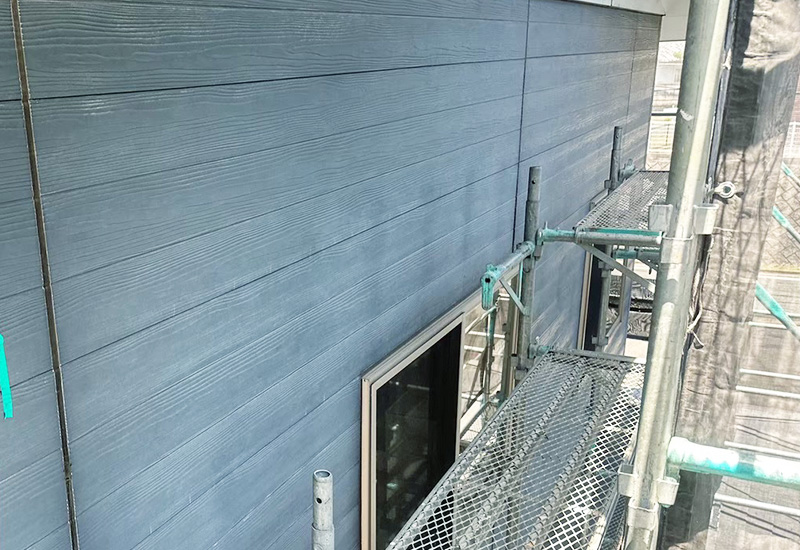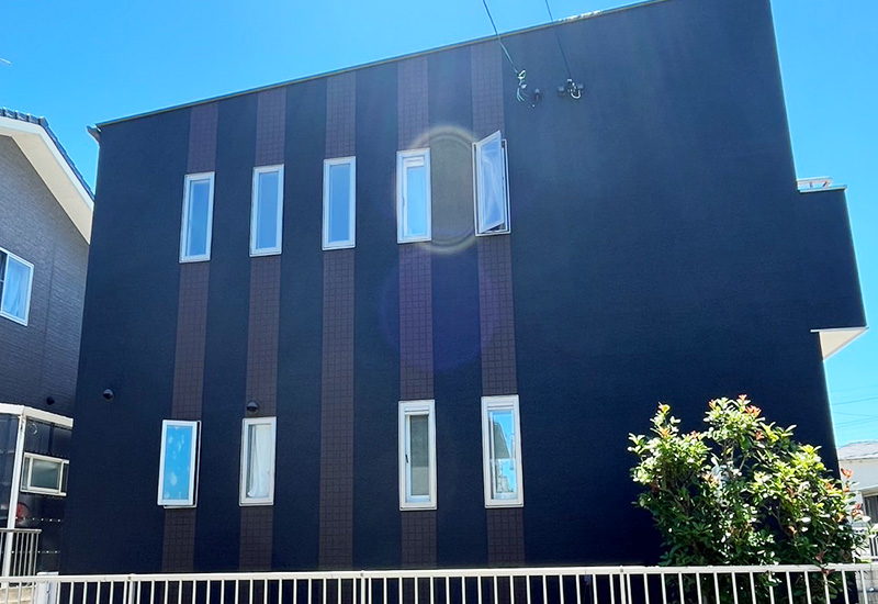 下塗り・中塗り・上塗りの順に行います。まず下塗り専用の塗料を塗布し、外壁材と塗料の密着が良くなるようにします。次に、ご希望の色に近づけながら、塗膜の厚みを確保するための中塗りを行います。最後に仕上げとして上塗りを行います。